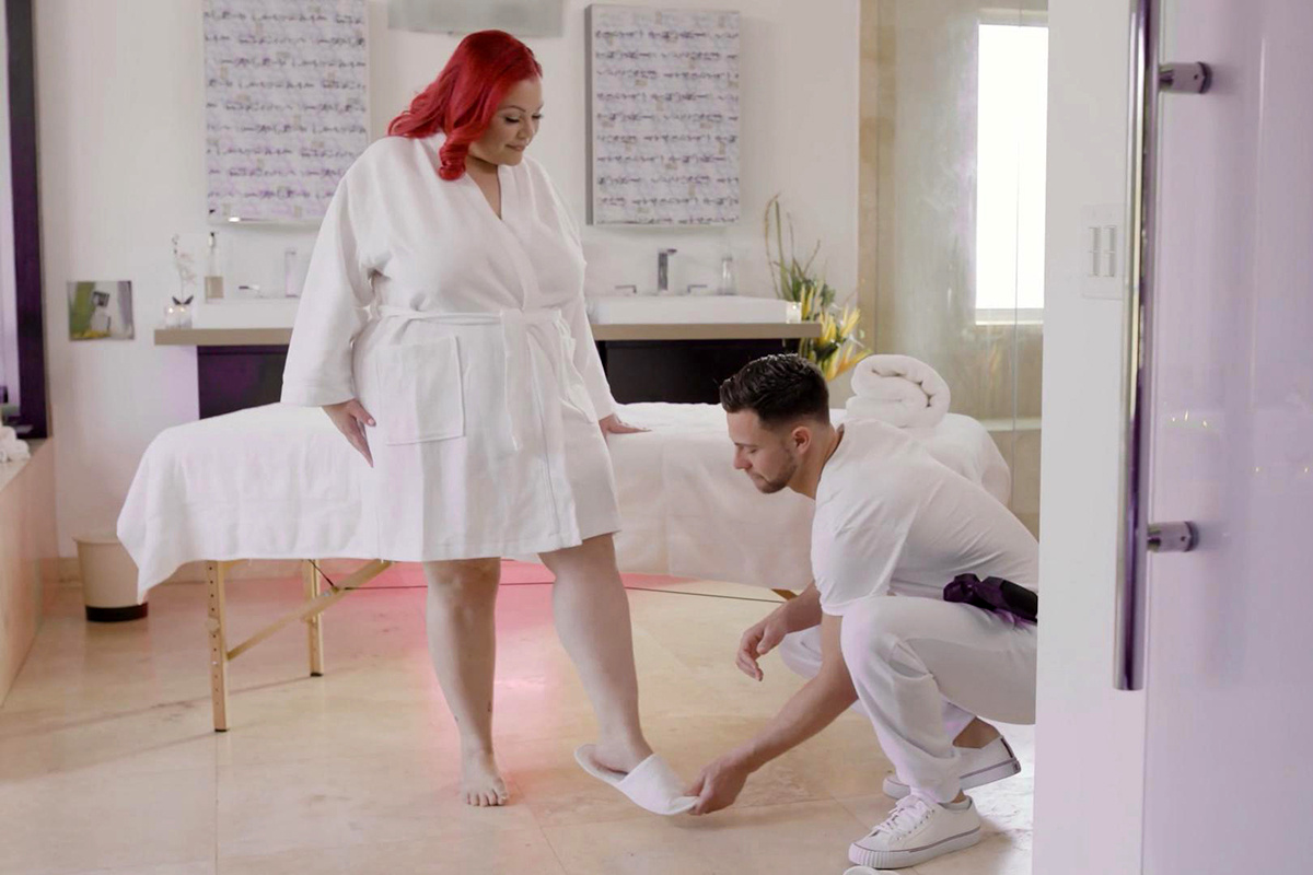 Charles travaille dans son bureau lorsqu’Alexxxis lui apporte une tasse de café pour faire une pause. En se penchant vers lui, elle lui offre un aperçu de ses seins, ce que Charles ne manquera pas de remarquer.