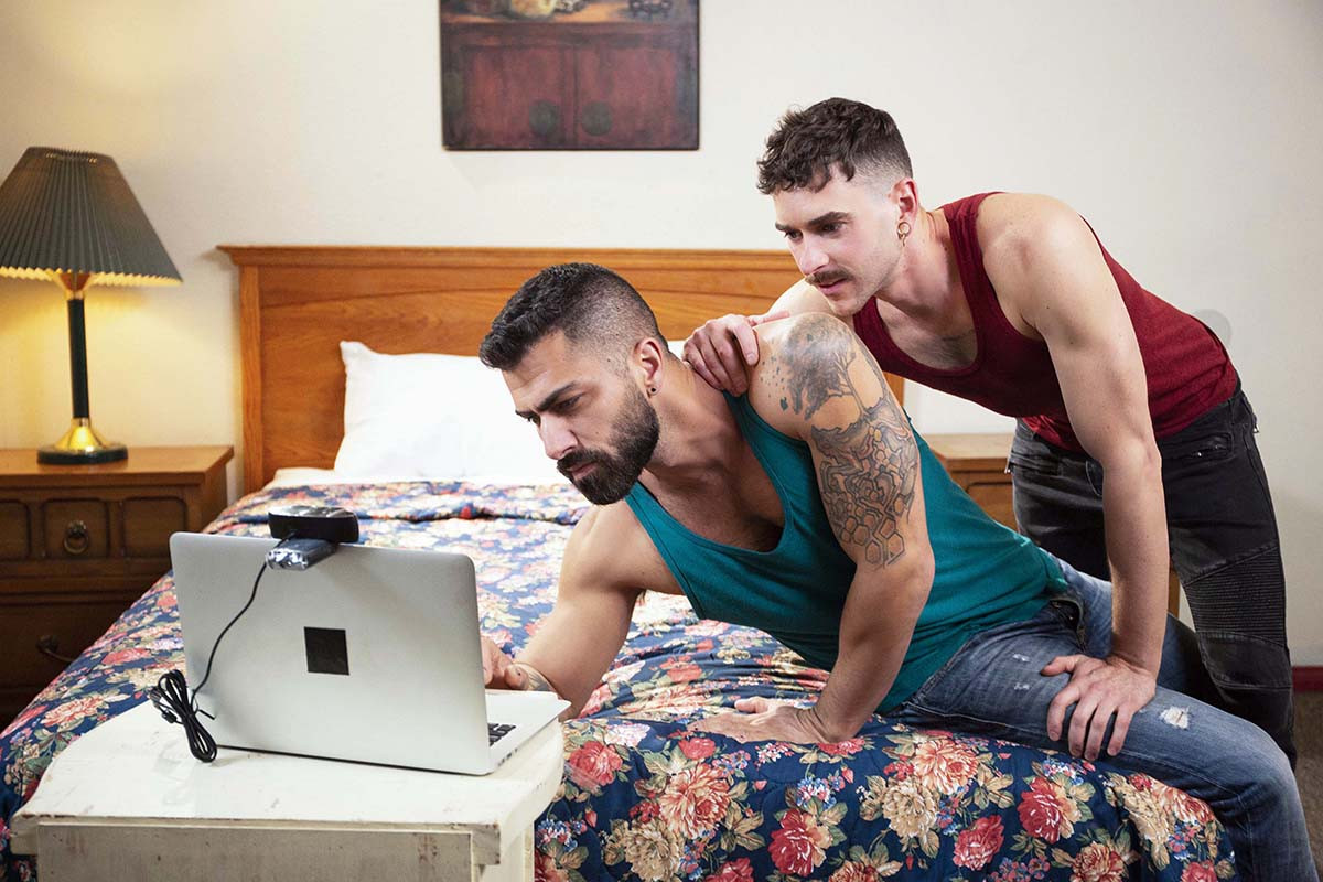 Comme ils n'ont pas d'endroit à eux ni d'intimité, Jack Hunter et Taylor Reign se rendent dans un motel isolé. Mais il y a un petit hic ! Les chambres du motel sont équipées de webcams et retransmettent la débauche qui s'y déroule en direct sur Masculin. chat - un site de streaming de caméras xxx en direct. Et, pour adoucir l'arrangement, les clients du motel (et les cam performers) peuvent garder les pourboires qu'ils gagnent grâce à leurs fans ! C'est une situation gagnant-gagnant car des milliers de gars et de filles prennent également du plaisir à regarder ces deux mecs !